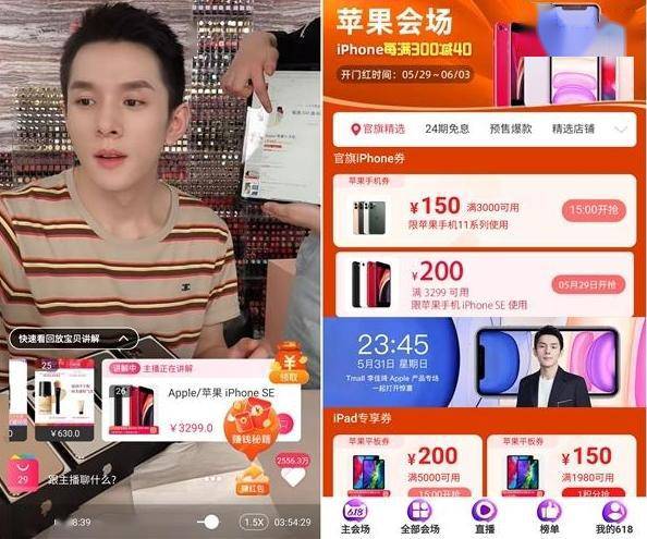 本周,李佳琦在直播活动中压轴介绍新款iPhone SE,苹果官方出资降价200元,并支持12期免息。 从淘宝/天猫的预告来看,今晚(5月31日)的直播活动(23点45分)中,李佳琦还会开启苹果产品专场。
