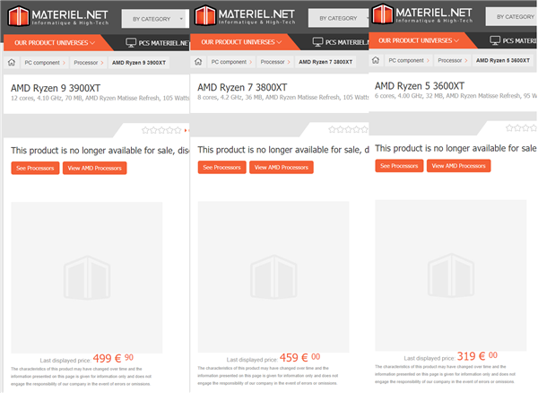 此前我们已经在3DMark、CPU-Monkey等多个渠道看到了锐龙3000XT系列的规格、性能,现在法国大型零售商Materiel已然将它们摆上了货架。