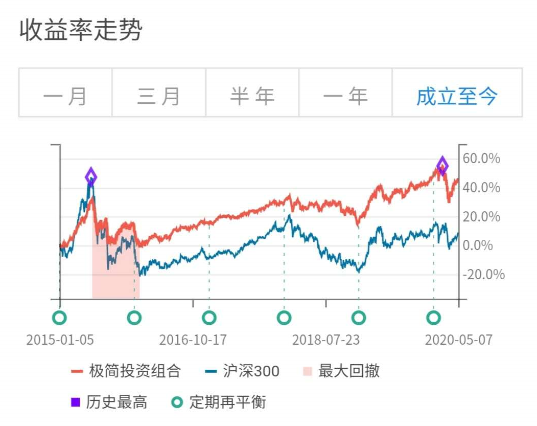 极简投资组合将80%的钱配置在了股票类资产上,目的就是希望组合能够获得更高的投资回报。
