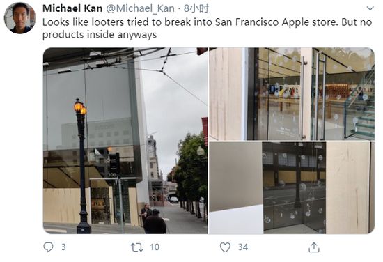 PCMag的Michael Kan看到有迹象显示,抢劫者试图进入旧金山一家苹果店,由于没有任何物品陈列,所以无果而终。照片还显示,店面两侧的低层窗户四周都用木板封住了,而高处的玻璃窗则被晾在一边。
