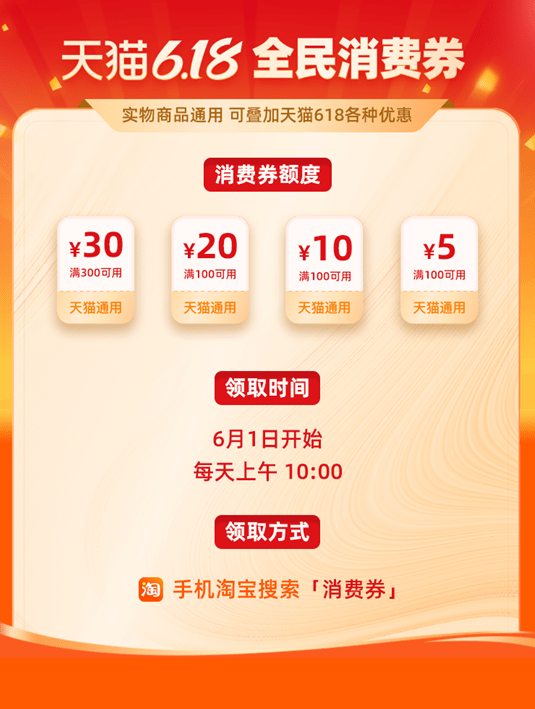 原标题:今天上午10点,天猫618的40亿消费券第一波开领