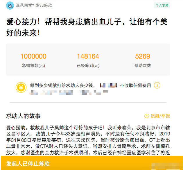 根据众多媒体的报道,这里面的诈捐案例比想象中多。比较著名的就有德云社演员吴鹤臣,在北京拥有两套房一辆车的吴鹤臣家,却在筹款页面上被认证为「贫困户」,发起了 100 万元的筹款。
