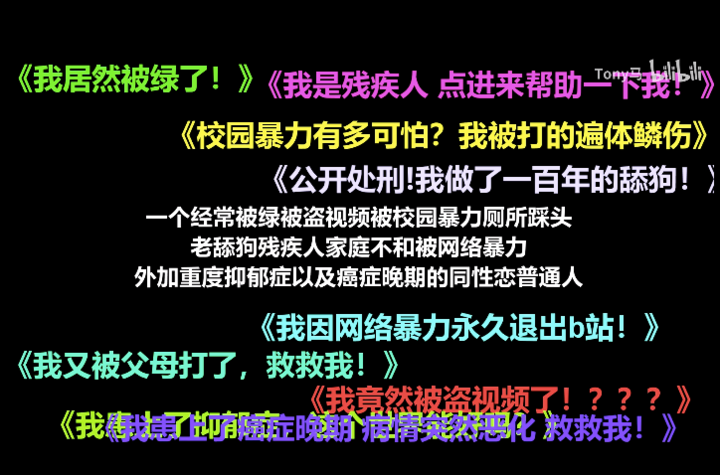 随着这类真假难辨的视频在 B 站上越来越多,有网友戏称 B 站是「人均抑郁症,癌症满街走,精分不如狗。」