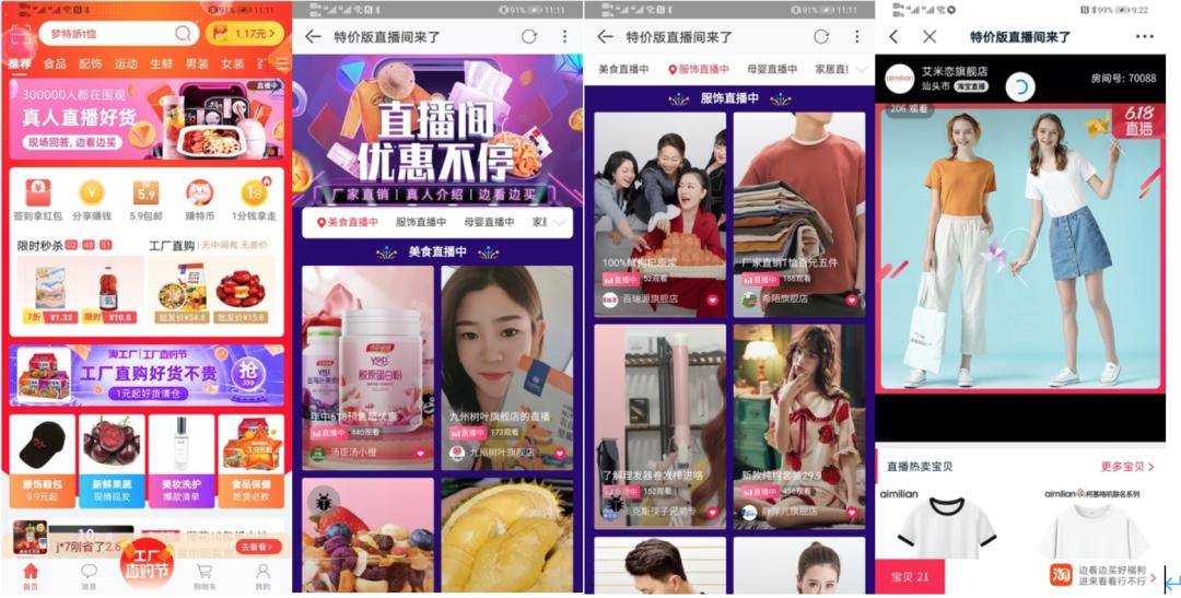 阿里巴巴即将在 618 大促期间上线第二个直播平台 ——「淘宝特价版直播」,定位为首款工厂直播平台,目前该平台仍处于内测阶段。从曝光截图可与看出,App 给予了新业务较大的曝光量,直播入口出现在 App 首页轮播位中,用户可由此进入「特价版直播间」。