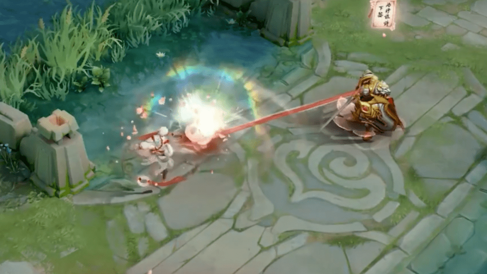 击中敌人后,会出现一个大风波,这个风波看上去就打击感很好的样子,相信上线正式服后,很多玩家会因为这款皮肤的新特效,纷纷将其入手。确实,特效改成这样,不心动都难啊。