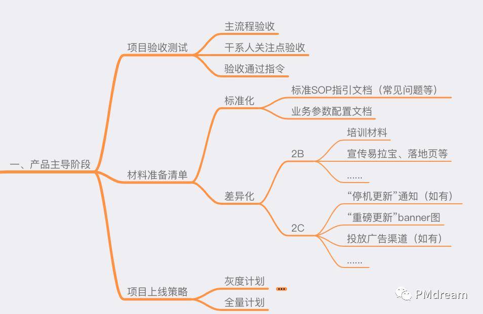 其实思维导图里面的都是我自己根据多个项目经验整理出来的步骤,有技术型产品经理觉得梳理得有误,可以指正我修改。完整以下内容知道就好了。