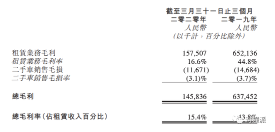 在2020年Q1,这一特点尤为明显:神州租车的毛利率由去年同期的43.8%下降到15.4%,毛利润减少近5个亿。