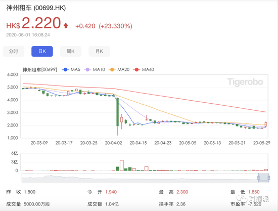 2020年1月到2020年4月,神州租车的股价从5.3港元下跌到4.35港元,下降了18%。与整个行业相比,跌幅不算太大。