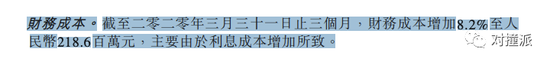 因为利息成本增加,2020年第一季度增加了超过8%,到了2.2亿,直接导致了本季度出现亏损。