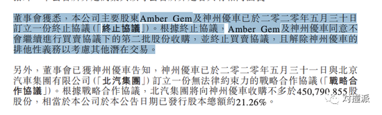 神州租车的公告中表示,Amber Gem完成了第一批4.65%的股份收购,第二批收购宣布终止。