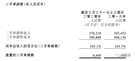二手车销售业务的营收,并未出现太多的下跌。今年Q1为3.9亿,2019年同期为3.9亿。