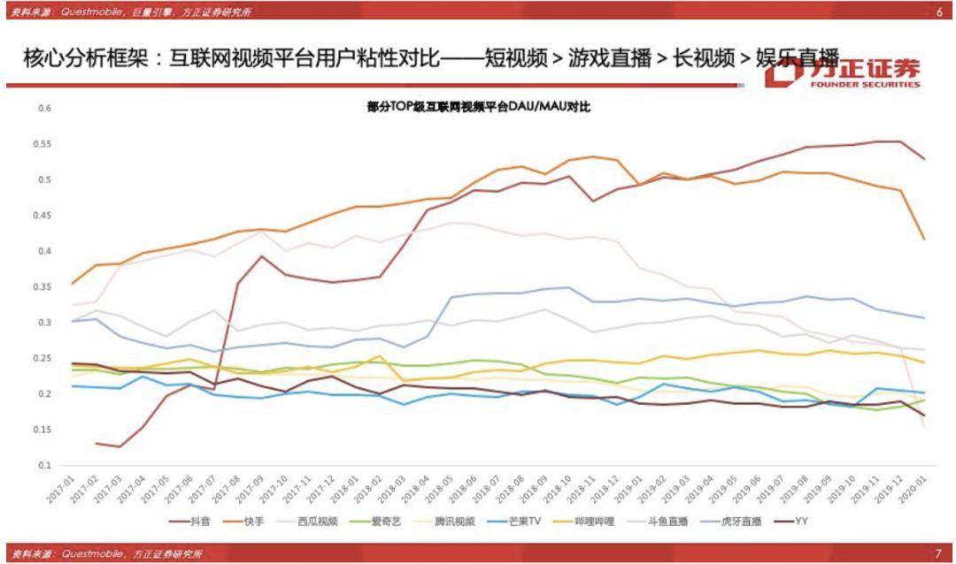 方正证券此前发布的研报显示,2019年6月短视频行业月均使用时长已达22.3小时,18年6月/19年6月使用时长增速分别为537%/60%(社交使用时长同比增速分别为17%/-9%、长视频使用时长同比增速分别为31%/15%),短视频行业借助4G普及红利,有效满足用户碎片化娱乐场景需求,月均使用时长已超手游、在线视频等。