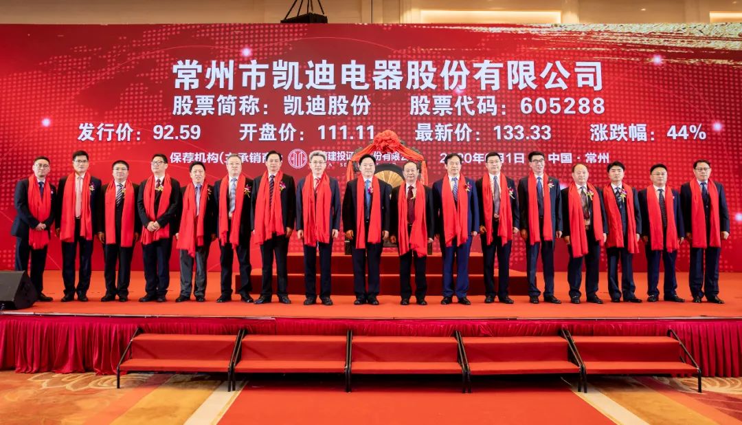 常州市凯迪电器股份有限公司(简称:“凯迪股份”,股票代码:“605288”)今日在上交所上市,发行价为92.59元,募集资金总额11.57亿元。