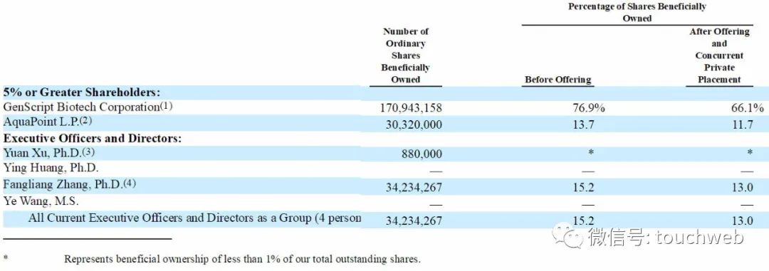 IPO前,金斯瑞持股为76.9%,为传奇生物大股东;章方良持股为15.2%;IPO后,金斯瑞持股降至66.1%,仍为大股东,章方良持股为13%。