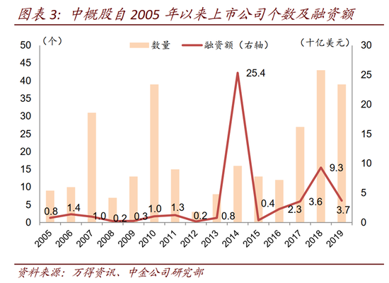中金公司统计发现,从港交所对二次上市的规则来看,符合要求的中概股有19家,总市值约3400亿美元。