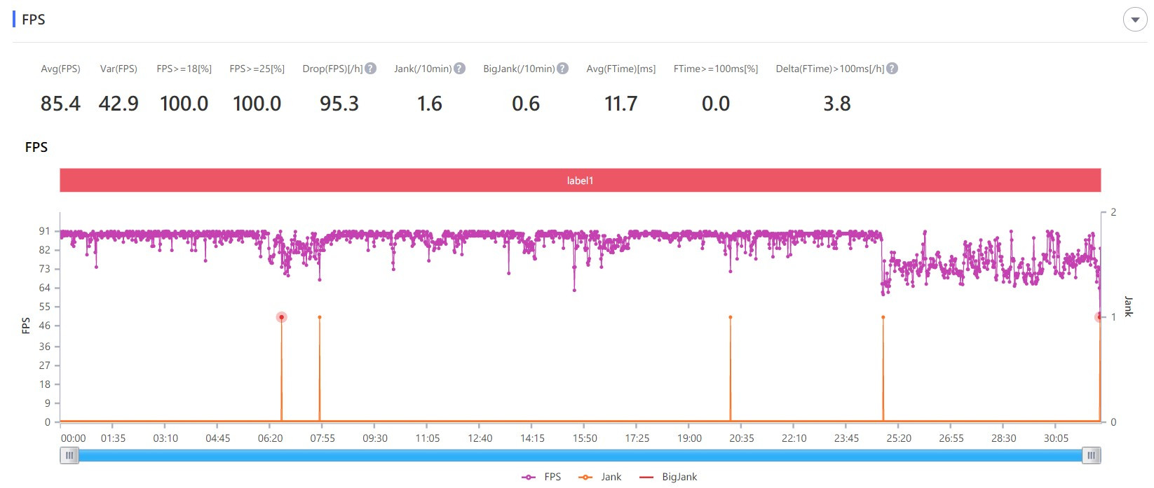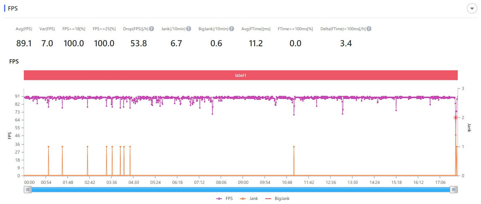 可以看到,魅族 17 Pro 能够比较流畅地运行《崩坏 3》全高画质 60 帧以及《和平精英》90 帧模式 + 均衡画质,而如果切换到《和平精英》90 帧 + HDR 高清画质则会有一定程度的波动,主要表现在驾驶载具等画面剧烈变化的场景,游戏后期由于机身发热,掉帧及波动程度会更大,这大概也触碰到了骁龙 865 平台的游戏性能上限。