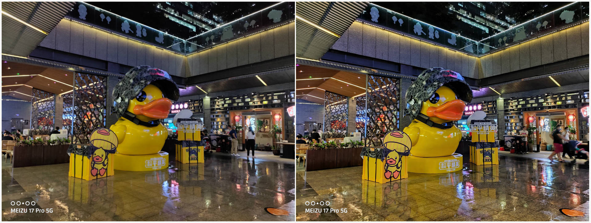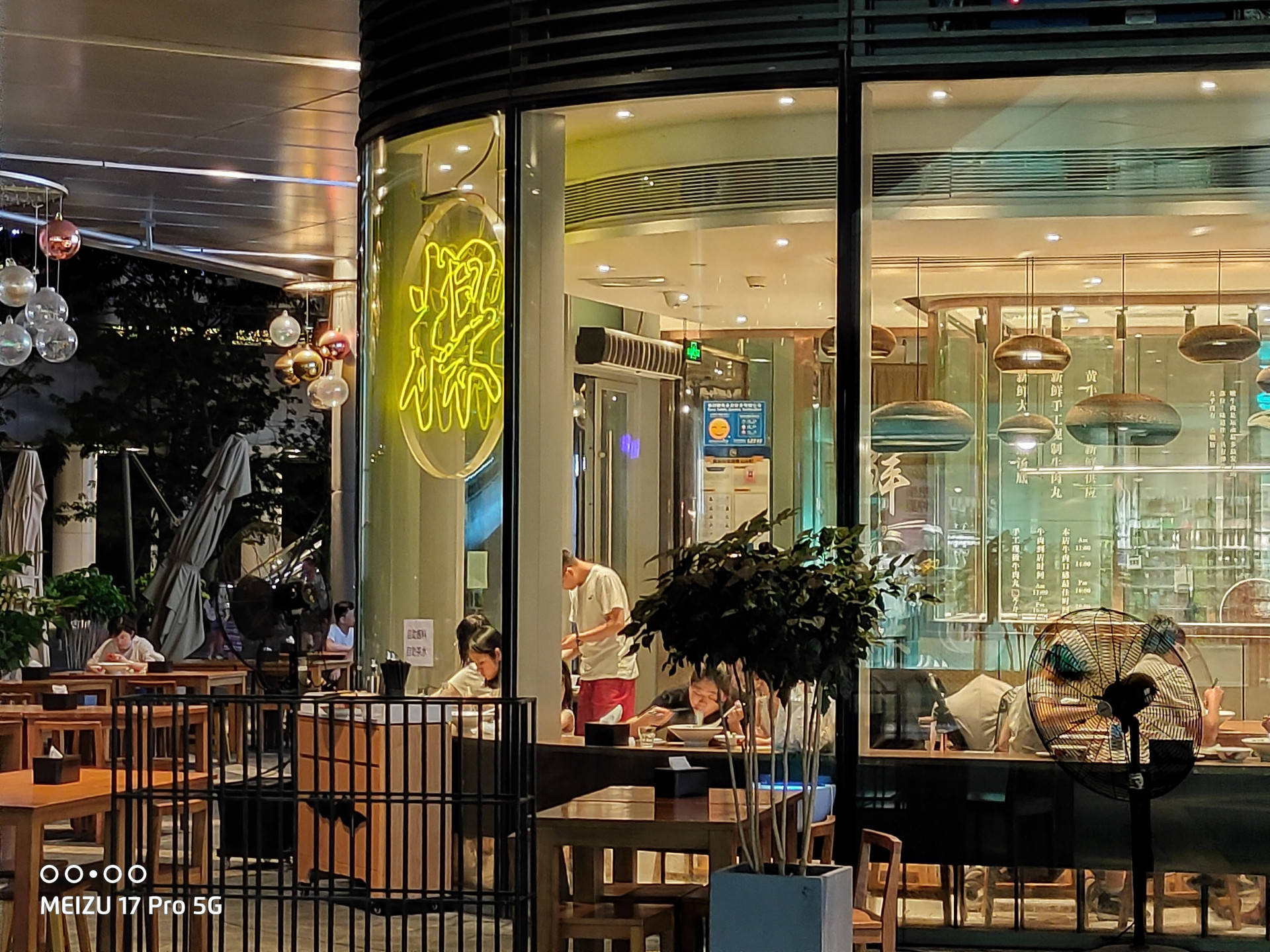 夜景表现上,在不开启夜景模式时,魅族 17 Pro 的主摄成片在层次感上偏差,也容易丢失暗部细节,这可能与光学防抖的缺失有关,查看照片信息就可发现自动模式下的夜景照片魅族 17 Pro 最慢只能把快门放到 1/25 秒;开启夜景模式后对比度、动态范围有一定程度的提升,夜景模式色彩风格也属于讨喜的类型,并且魅族的夜景模式合成时间较短,并不影响拍摄体验,建议夜间、暗光场景下一律开启。