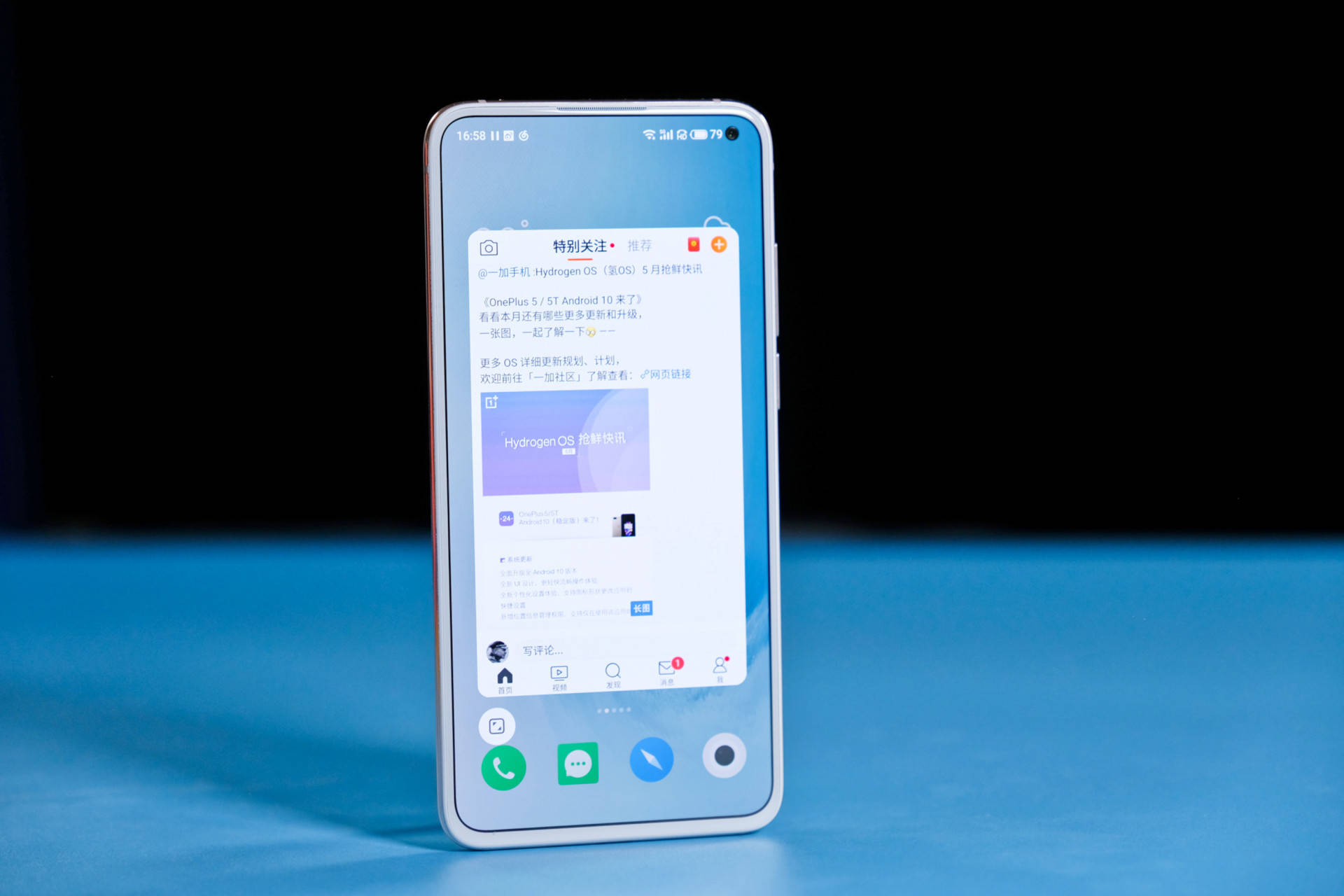 小孔径 + 接近四边等宽使得魅族 17 Pro 视觉屏占比和视觉平衡感做得相当突出,白色的边框又给美观度加分不少。美中不足的是这代魅族 17 系列放弃了悬浮点胶工艺,屏幕与边框之间有一层塑料包边,这在白色版本上看起来比较明显,视觉上稍有割裂感。