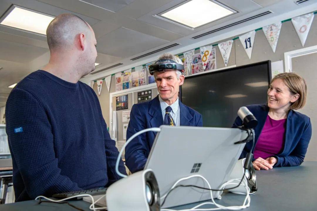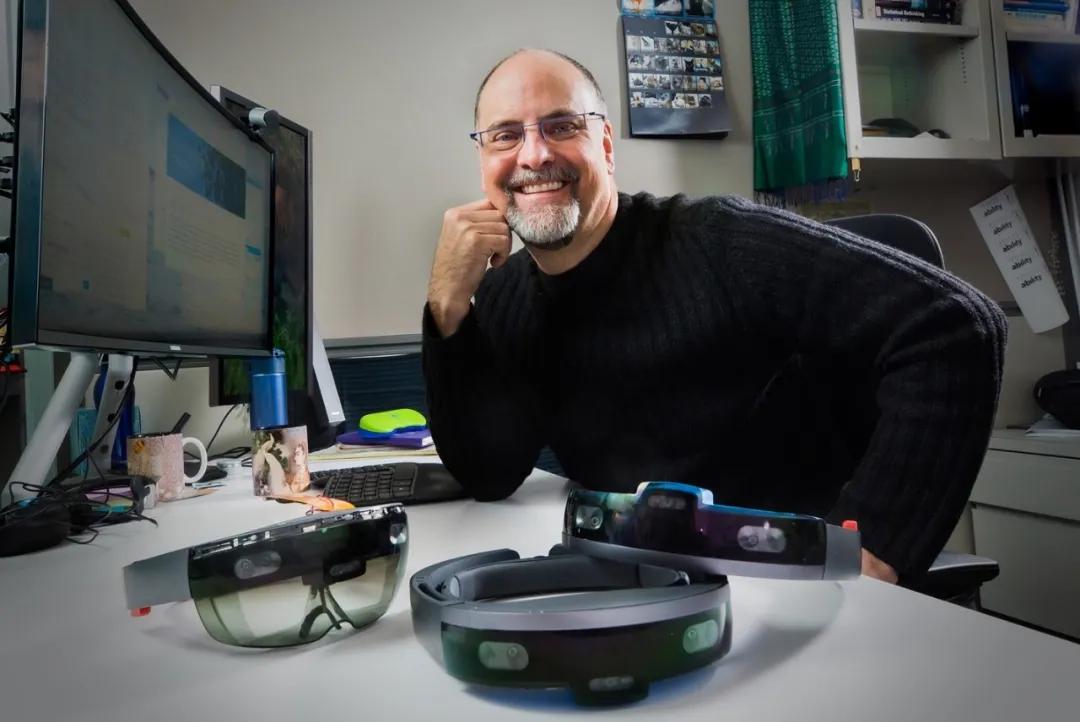 微软研究院首席研究员 Ed Cutrell 与项目中经过改装的 HoloLens 设备