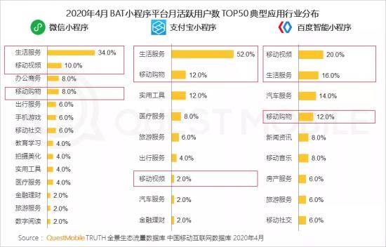 百度“均”:整体而言,百度的小程序分布更为“平滑”,资源、流量没有过分富集到特定的产品和行业上。
