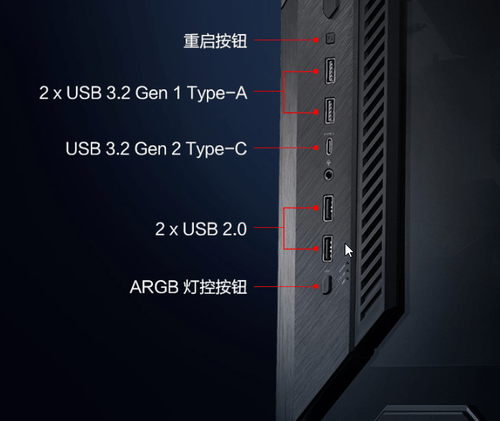 兼容性方面,ROG Z11电竞ITX机箱支持mini-ITX/DTX 主板,支持高度小于或等于130mm的CPU散热器,以及高度小于或等于320mm的显卡安装。支持ATX/SFX电源,最高支持1块HDD+2块SSD,也可以直接安装4块SSD。机箱正面提供了4个USB-A接口、1个Type-C接口,设置了重启按键以及ARGB灯控按键。