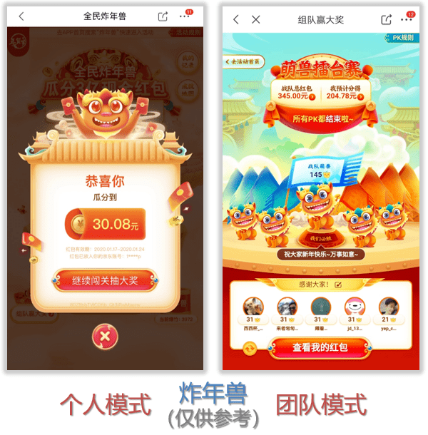 等等,如果说个人模式是薅羊腿,那么团队模式绝对算烤全羊,假设PK战全胜的话,战队红包预计高达上千元,还等什么,赶紧组队呀!