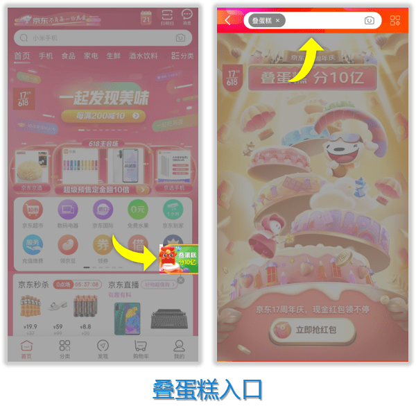 楼梯:京东App-搜索「叠蛋糕」