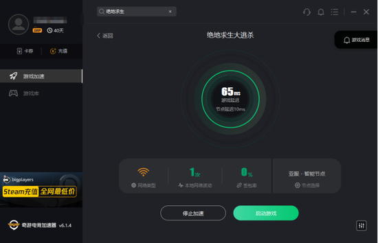 奇游加速器是《绝地求生》的专用老牌加速器之一,是用户规模最大、收获好评最多的网络优化工具之一,2014年就起步做平台游戏联机加速,品牌优势非常明显,配备12小时客服和24小时技术运维资源,新用户注册送45元优惠券,首充最高立减20元,尽可放心入坑。