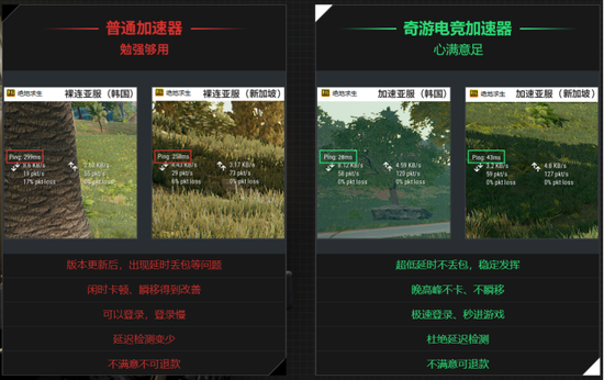 重视周知,像《绝地求生》这类Steam平台的FPS联机游戏,对加速器的依赖程度非常高,好的加速器能够有效降低延迟、减少丢包率、防止卡顿和掉线问题,还能优化地图资源加速速度,针对即将开启的限免活动,奇游加速器提前对吃鸡所有线路做了全新升级优化,并配合更为完善的加速方案,延迟直降50ms起,并承诺杜绝卡顿、掉线、丢包、进不去问题,亚服/东南亚服/日韩服/美服/欧服/俄服/澳服的加速效果有显著进步,各位可以在限免活动来临前提前下载(支持客户端下载加速):