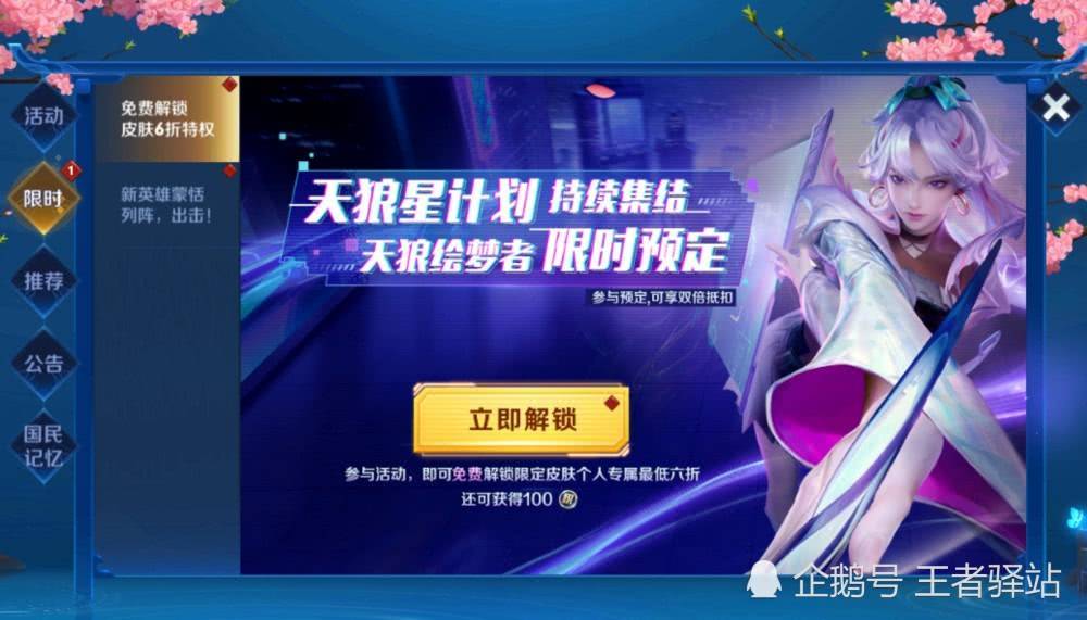 另外这次解锁折扣任务全服玩家都可免费参与,只要解锁6折还能免费领取100荣耀积分,所以即便不入手皮肤的玩家也记得参与任务获取积分哦!