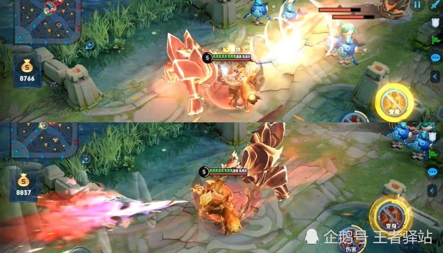 张飞新皮肤的魔种真身为黄色盔甲与黄色头发的搭配,变身后释放1/2技能砸向地面会出现蓝色不规则图案,同时会有红紫渐变色的焰火特效出现。由于未出现专属回城特效,因此可以得知张飞虎魄是一款888史诗限定,小编觉得该皮肤的特效比前两款要燃,加入的传统色彩也更丰富,展现了东方文化审美,还是很期待其早点上架的!