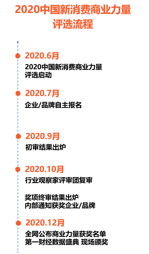「2020中国新消费商业力量」评选正式启动,最终评选【年度影响力】【年度增长力】【年度新锐力】【年度科技力】【年度产品力】【年度公益力】六大类别奖项,揭晓五大年度商业影响力爆品榜单。