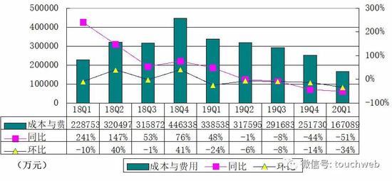 云集2020年第一季成本与费用为16.7亿,较上年同期的33.83亿元下降51%。