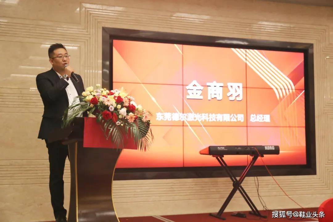 在开业庆典晚宴上,德尔科技总经理金商羽上台致词。他表示,晋江是制鞋产业的重要城市,位于中国三大制鞋基地之一的福建省,拥有众多国际知名品牌代工厂和国内自主品牌生产厂家。但受全球疫情影响,鞋业界遭受重创,各大品牌噩耗不断。鞋机界也面临订单锐减的严峻挑战,市场萎靡不振,一片沉寂。
