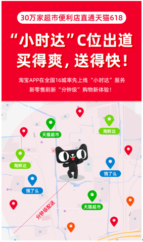 原标题:淘宝上线“小时达”服务 30万家超市便利店直通天猫618
