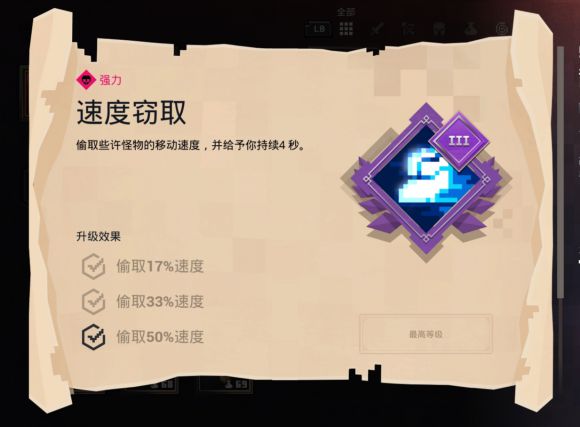 顺带便,给大家推荐一个弩类的舒适性技能速度窃取(开荒用,后期全程蘑菇)。