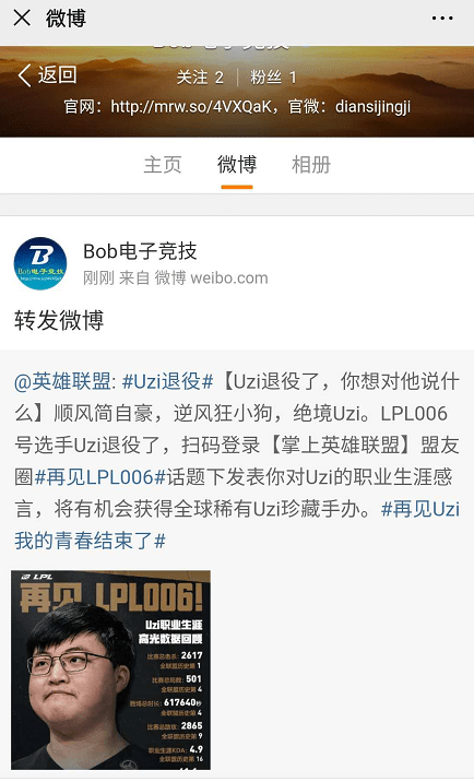 Lpl的解说也不断在微博转发,我们看到静静圈里面当时全都是UZI的消息,这就说明了他在lpl的地位和人气,其实有很多粉丝潜意识就感觉到了才会退役的,本来期待他能够大满贯,现在冠军了,也算心里踏实了。游戏网