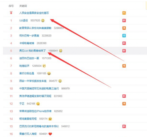 在短短几分钟内UZI就已经上了微博的热搜第1名,同时小明也登上了微博热搜,小明也陪着UZI打到了退役。