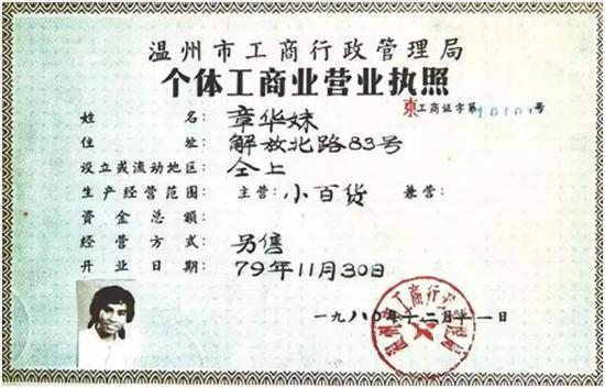 第二天,小章问工商员要了一份表格,填好后送到工商所。她没有想到,父女二人那一晚的决定,让她成为了中国第一张个体户执照的持有者,她因此会被写进中国民营经济史,而且是绝无仅有的一篇。