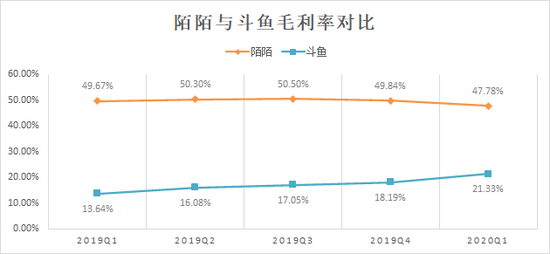 陌陌的毛利润远高于斗鱼,但从净利润率变动情况来看,陌陌的领先之势已经不难么明显了但陌陌仍创造了一个“奇迹”——陌陌在总体收入比上季度减少了23%的情况下,在这一季度依然保持了盈利,只不过盈利比上季度减少了一半左右。