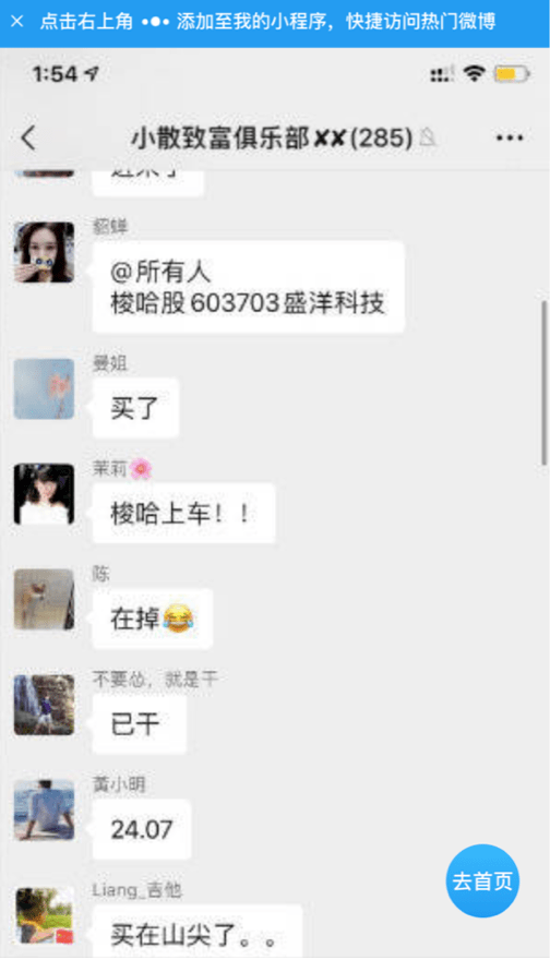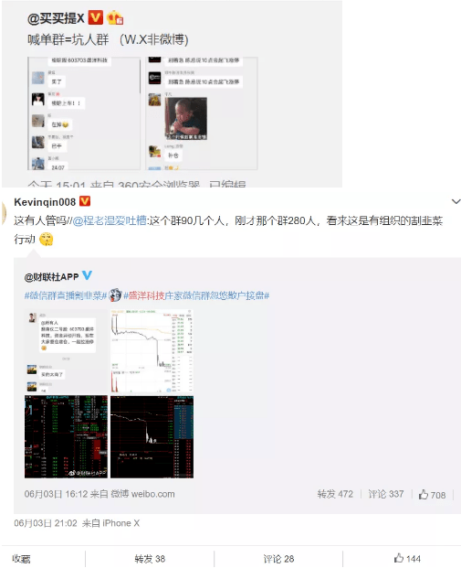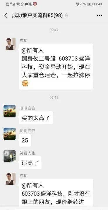而在盛洋科技跌停收盘之后,就有微博大V曝光有炒股微信群忽悠散户接盘。