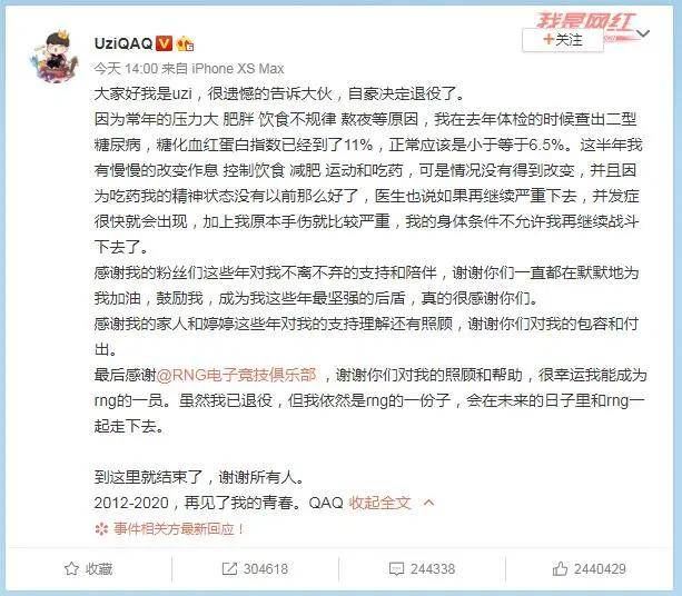 此外 Uzi 虽然在 RNG 退役,但他依然会作为 RNG 战队的一份子继续在电竞圈内走下去。
