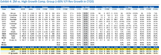 我们将股票从行业表现上调至优于大盘,并将目标价格上调至250美元。 我们的PT意味着CY21E收入倍数是我们基本案例估计的32倍。 展望我们的上行情景,我们的价格目标意味着25倍的倍数。 相比之下,我们的高增长竞争集团交易价格约为20倍。 我们认为,鉴于ZM在CY21年的估计增长率为+ 188%,而同业集团的平均增长率为38%,因此应该有溢价倍数。