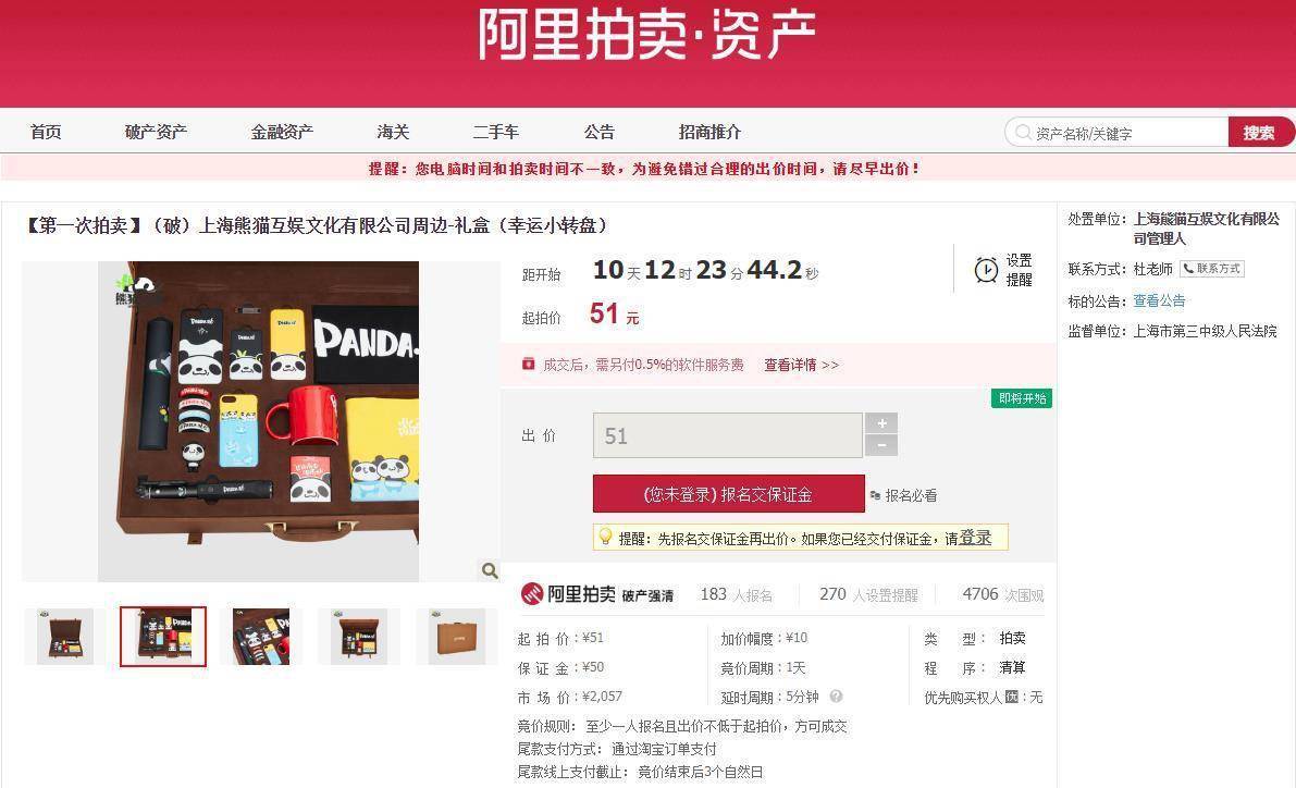 原标题:王思聪旗下熊猫互娱破产拍卖 市价逾两千元礼盒51元起拍