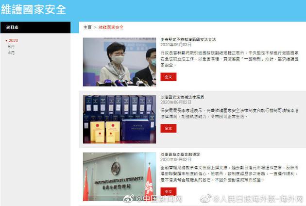 香港特区政府4日推出“维护国家安全”网站,以更好向市民普及涉港国安法,让市民全面了解立法的目的、意义等,促进香港社会繁荣稳定发展。网站主页面设置上,主要包括“新闻稿”“政府新闻网新闻片”“网志”“一图尽览”“短片”等模块。其中,“新闻稿”模块主要刊登关于涉港国安法的新闻动态;“网志”模块则登载香港特区政府多位司局长的网络日志。(新华网)