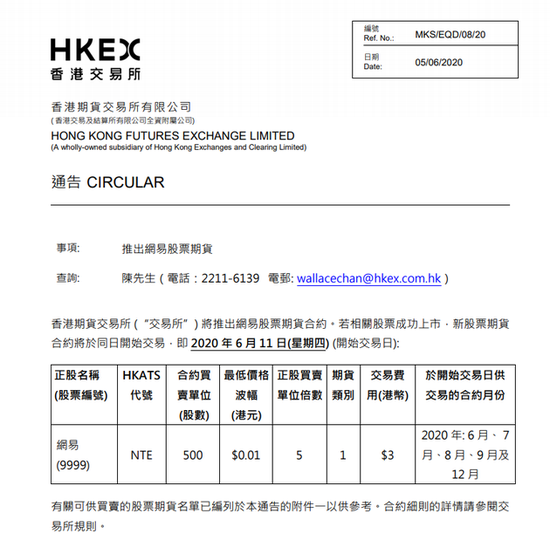 6月6日午间消息,香港联合交易所有限公司将推出网易股票期权合约。若相关股票成功上市,新股票期权将于2020年6月11日(星期四)同日推出。