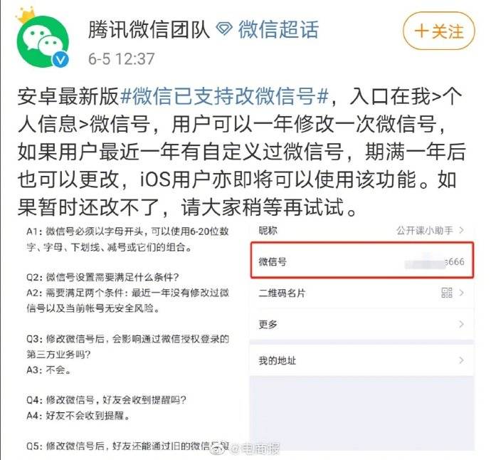 安卓版微信已支持改微信号,入口在我>个人信息>微信号,用户可以一年修改一次微信号。你还希望增加哪些功能