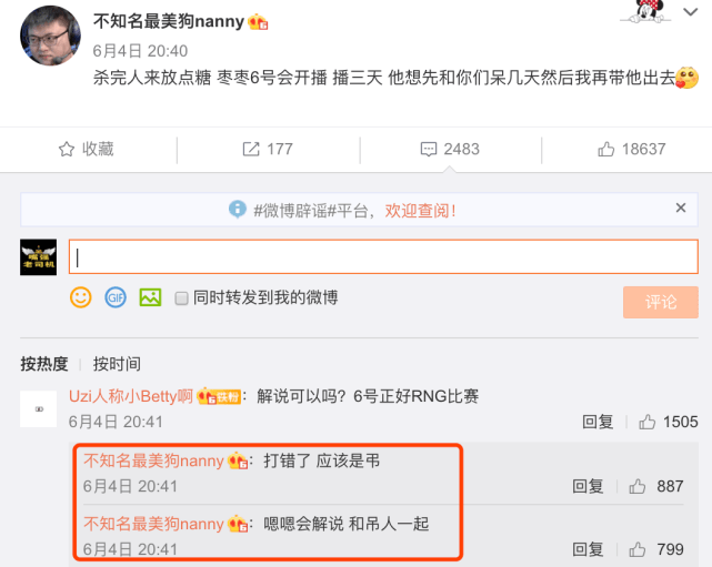 Uzi退役之后,很多粉丝们也都比较关心Uzi之后会做什么,什么时候会开直播,对此Uzi女友在微博里也是跟大家透露了一些想法。她表示Uzi会有几个采访要做,然后自己会带他出去旅游散散心,直播要稍微晚几天。但随后又表示,6月6日Uzi会开播,并且是连续播三天,还会解说RNG夏季赛首秀,跟姿态(微博里称Diao人)一起解说!看来之前姿态跟大家透露的并不是开玩笑,而是真的!