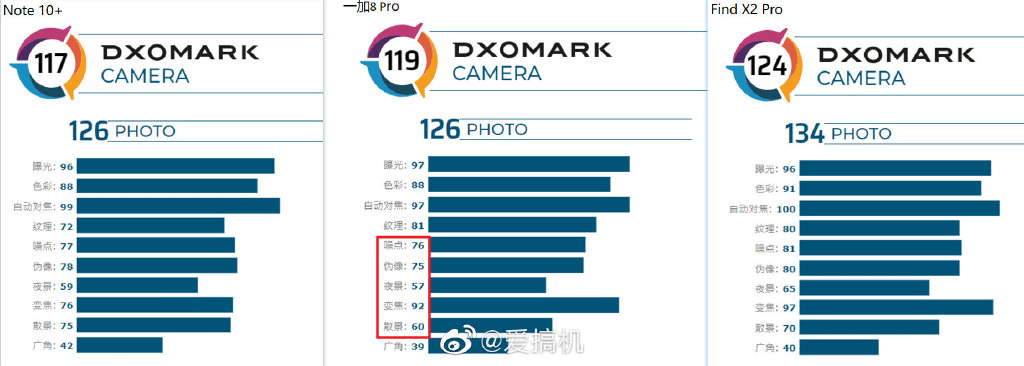 此前搭载同款主摄及超广角的 OPPO Find X2 Pro 在 DxOMark 获评 124 分,一度并列第一。一加8 Pro和它的主要差别在噪点、伪像、变焦、散景项目分数。游戏网