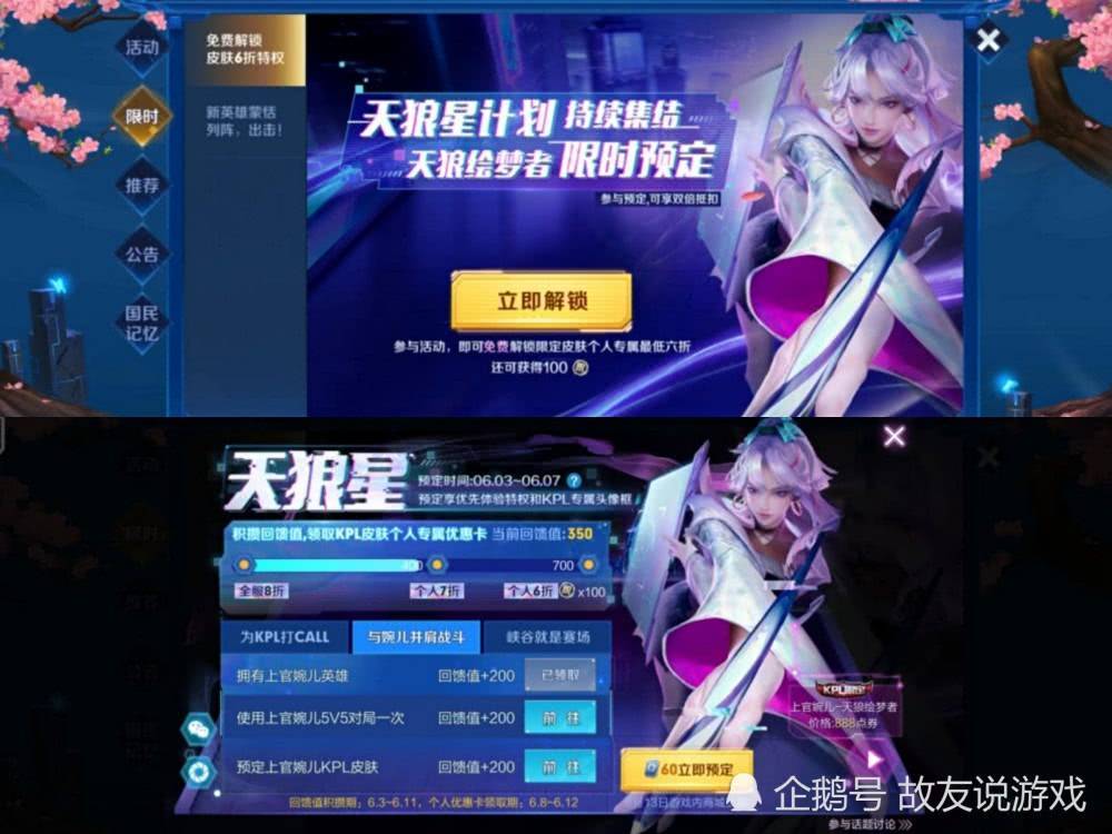 王者荣耀最近放起了大招,不断地上线新英雄和新皮肤。也正因为这些新英雄和新皮肤的推出,玩家们的活跃度也越来越高。这几日,婉儿的天狼绘梦者也开始预购了,很多小伙伴都很高兴,就等着入手试玩这款皮肤了。不过呢也别急,之后还有更多的惊喜等着大家呢!